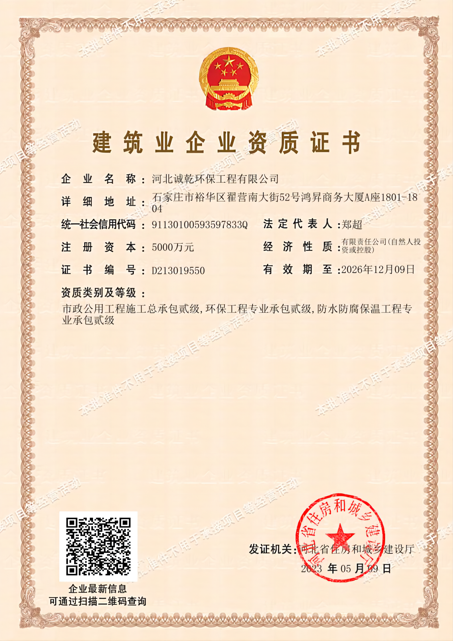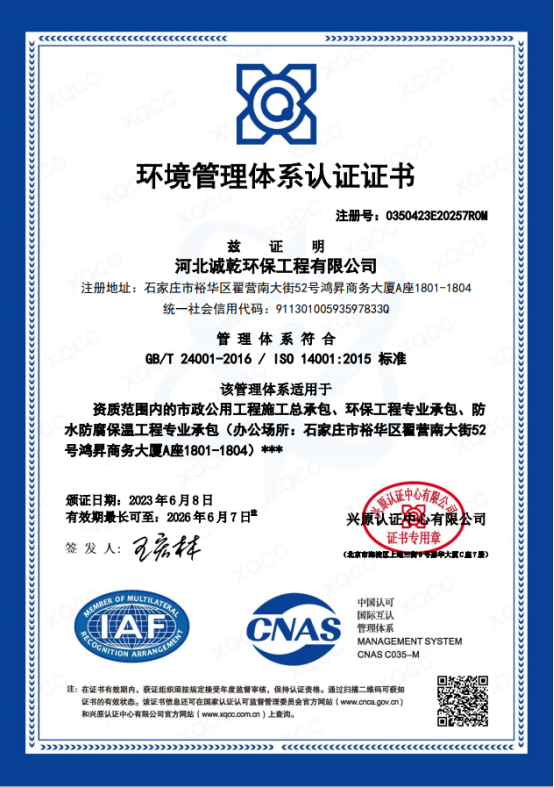 公司具有市政公用工程施工總承包貳級、環(huán)保工程專業(yè)承包貳級、防水防腐保溫工程專業(yè)承包貳級資質(zhì),通過了質(zhì)量管理體系認(rèn)證(ISO9001)、環(huán)境管理體系認(rèn)證(ISO14001)、職業(yè)健康安全管理體系認(rèn)證(ISO45001),充分保證產(chǎn)品的質(zhì)量達(dá)到標(biāo)準(zhǔn)要求,持續(xù)開發(fā)新工藝、新產(chǎn)品,提高自身生產(chǎn)能力,提高產(chǎn)品質(zhì)量。